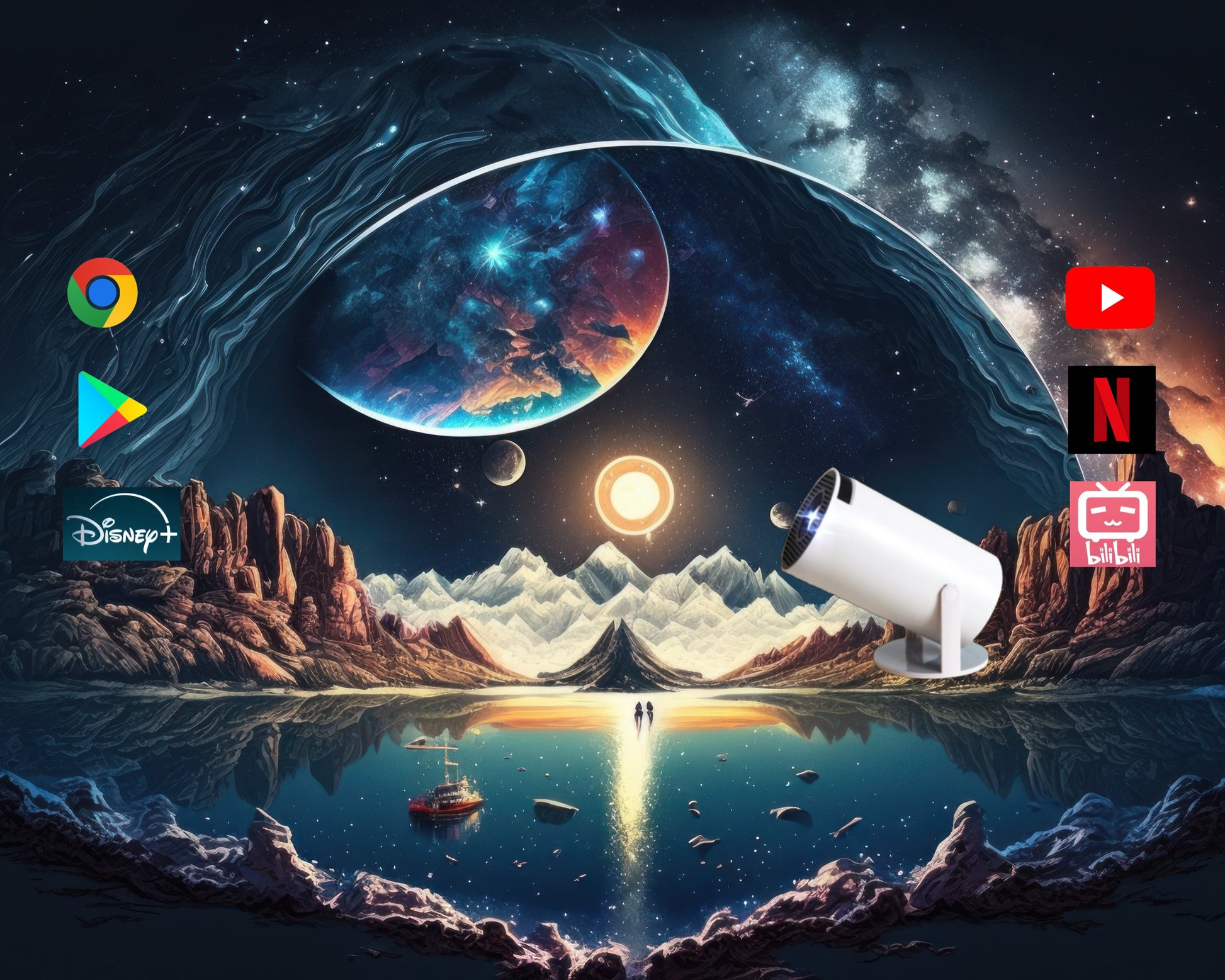 UPGRADED: 1920*1080 dpi, RAM 4G + ROM 32G, 2000 Lumens